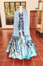 Perekanya menghasilkan lukisan kanvas yang dipotong menjadi skirt dan digabungkan bersama kebaya lace menjadikan karya ini kelihatan eksklusif. Karya masterpiece ini hanya ‘one of a kind’ atau sangat terhad dan sesuai dipamerkan dalam runaway, galeri seni, atau editorial fesyen.